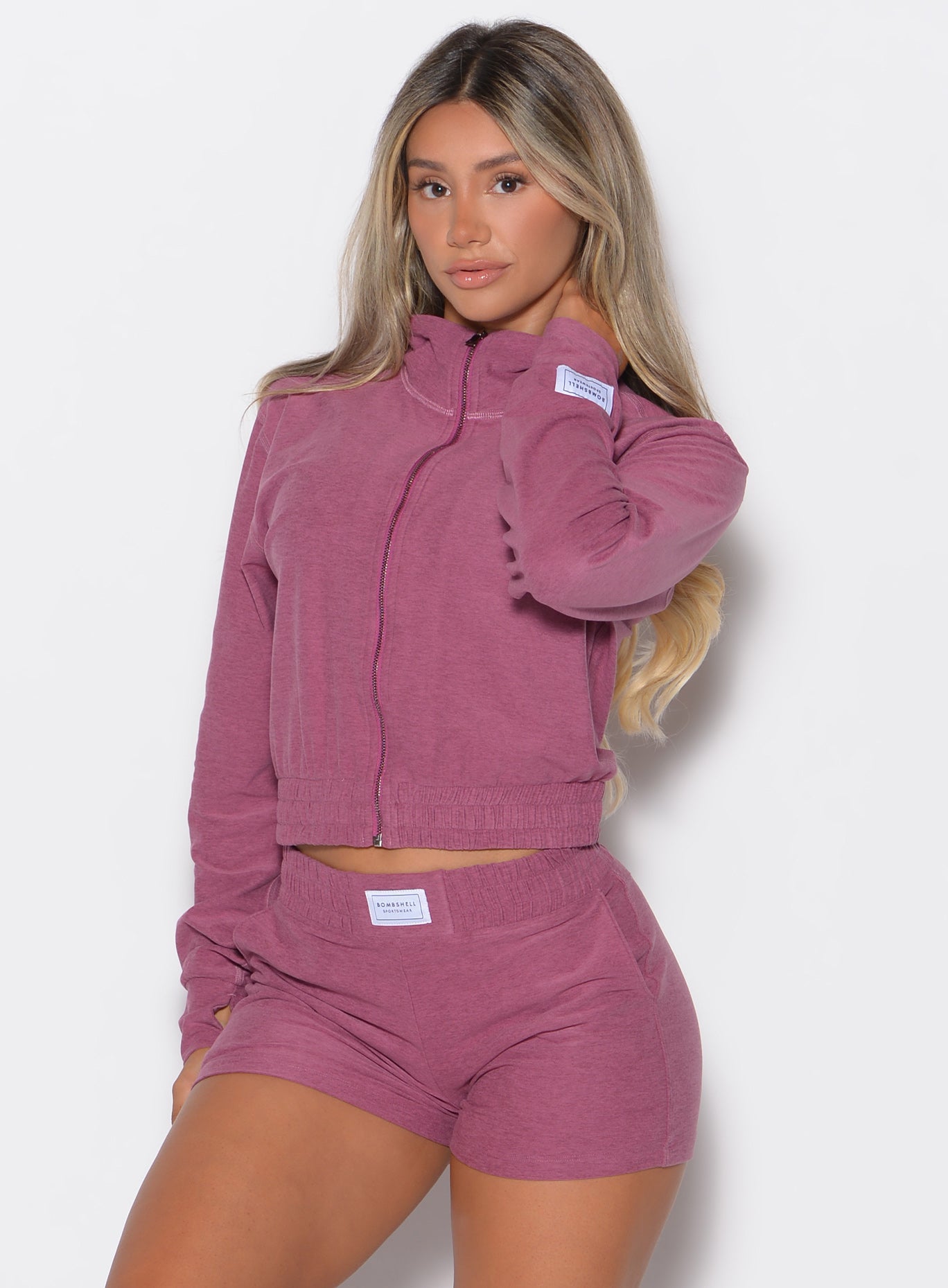 The Cloud Full Length Jacket delivers sleek performance with a flawless fit. Designed with a mock high neck. full-zip front. and clean flatlock stitching. it brings a polished look to every move. Scrunch detailing and thumbholes add functional flair. while the ultra-soft heathered fabric stays light. breathable. and ready for action. Layer it over sports bras and tanks for a versatile staple that keeps you looking strong from the gym to the streets.
