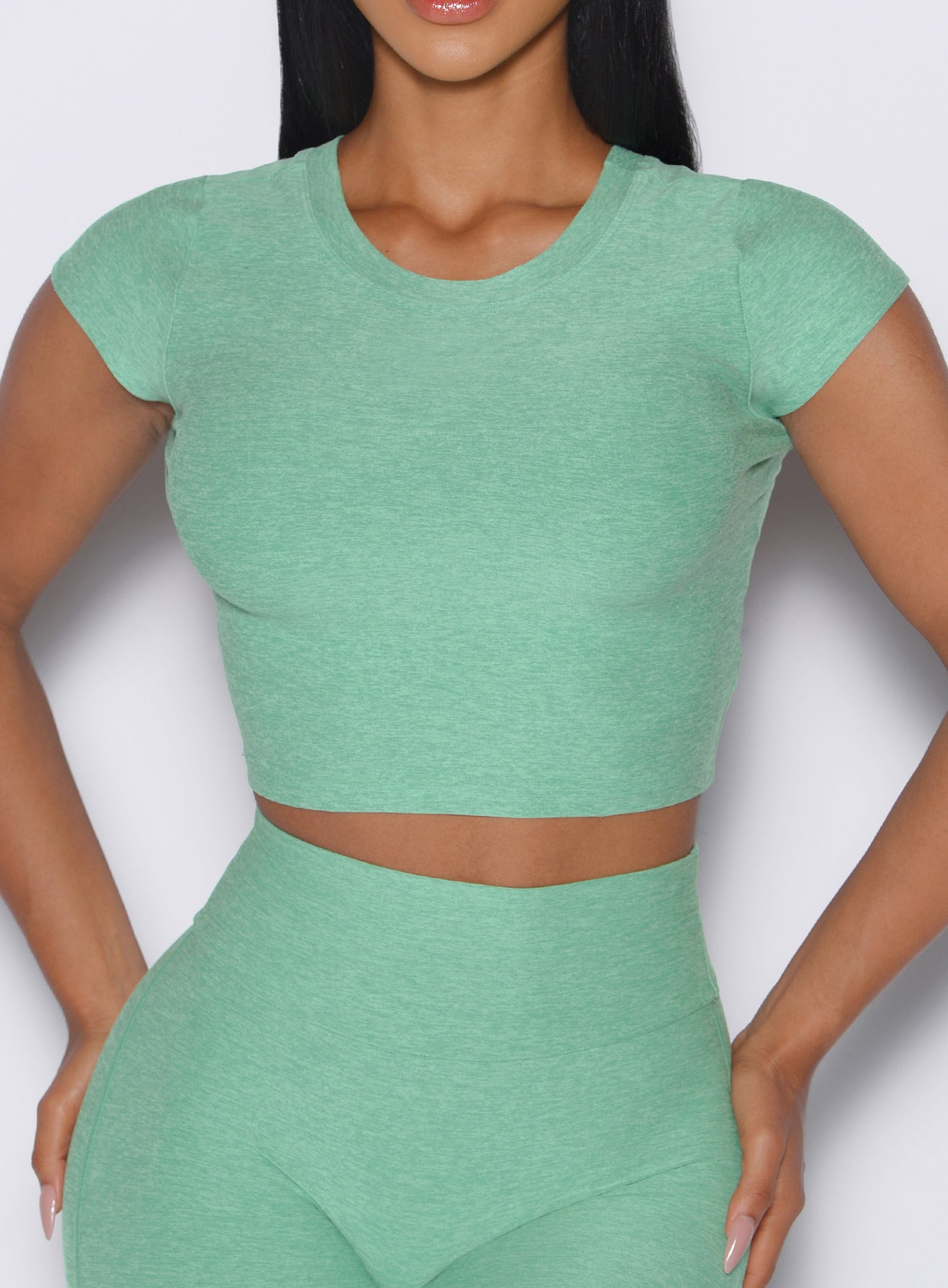 Elevate your look with our Fit Fam Active Tee. highlighting a round neckline. capped sleeves. and a cropped waistline that accentuates your well-toned physique. Whether you’re on your way to the gym or navigating your daily routine. this top is crafted to be your versatile companion.