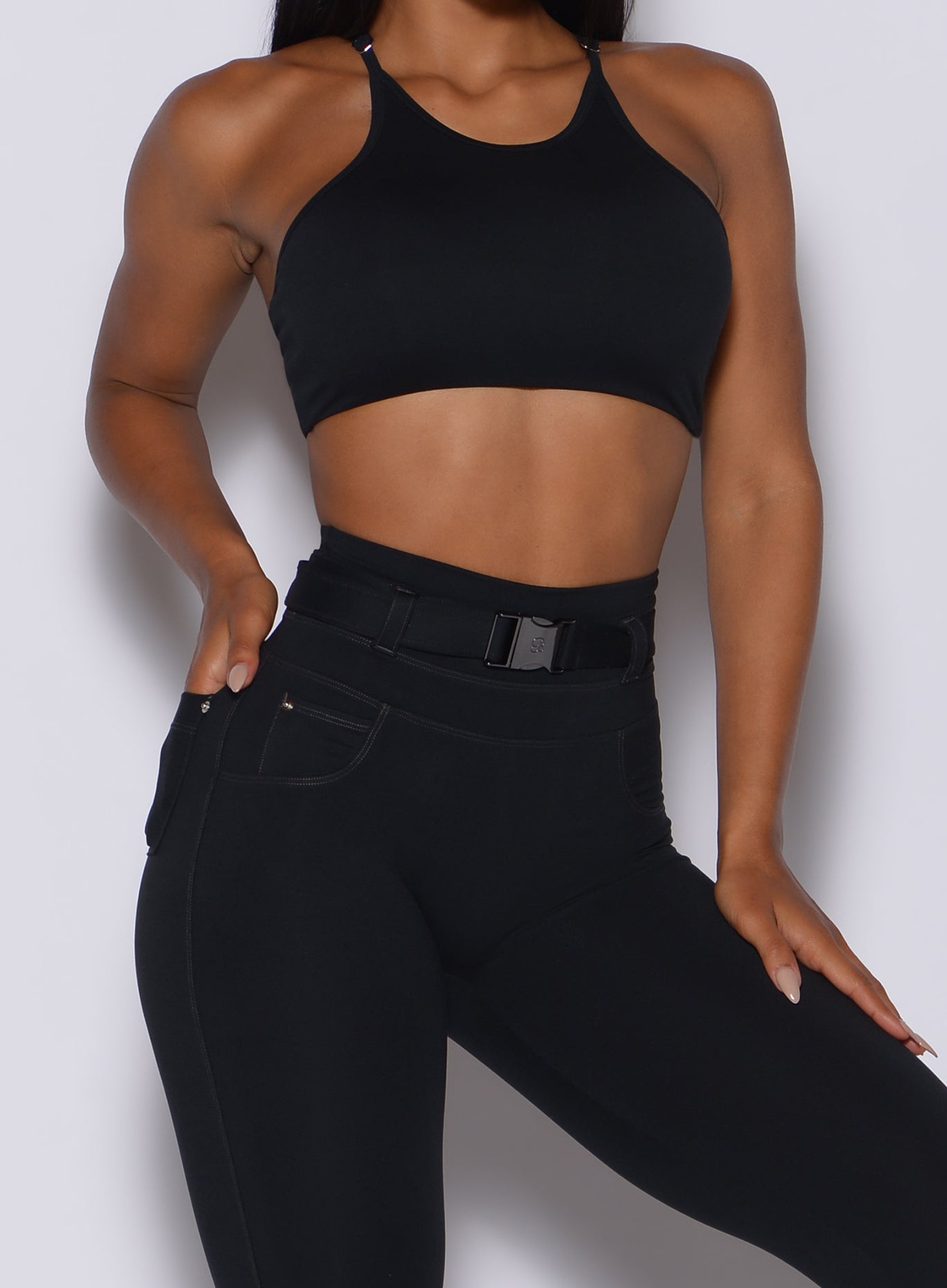The Peach Bottoms were developed with versatility in mind. offering a practical and stylish addition to any wardrobe. Our thoughtful design allows you the choice to personalize your look with our adorable front buckle belt or your own. adding a fashionable and customizable touch. The attention-grabbing detailed stitching. back pockets. and stylish hardware rivets contribute to the overall aesthetic of these bottoms. inspired by denim but even better! To achieve the full ensemble. pair them with our high neck bra to achieve a complete and captivating look.